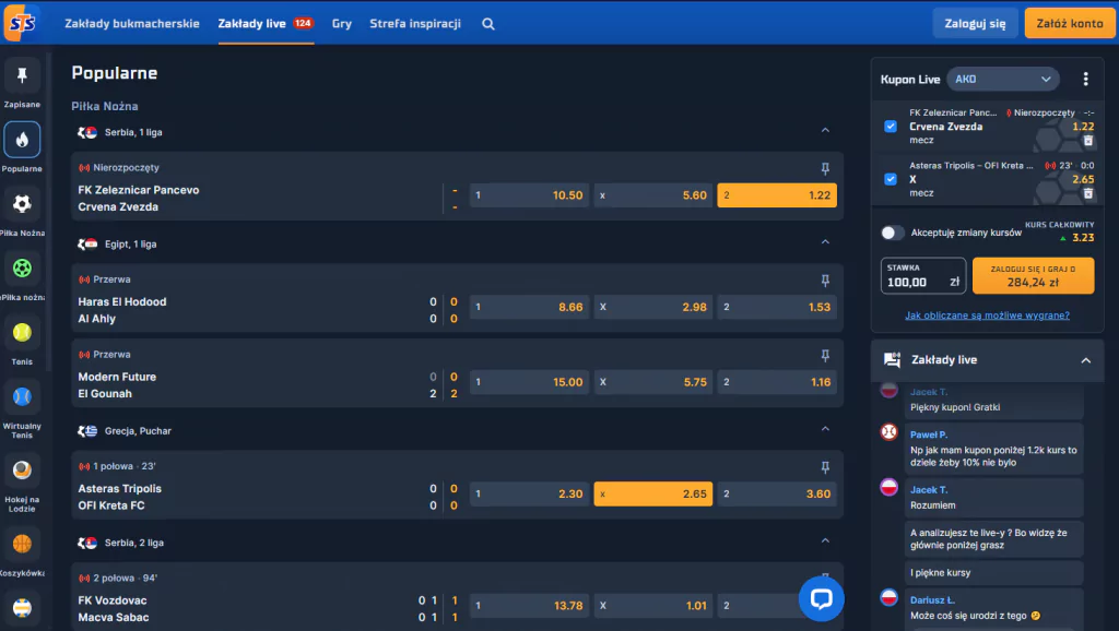 - Wybierz bukmachera – Idź w coś sprawdzonego z ofertą live na poziomie, np. Superbet, STS czy Fortuna.